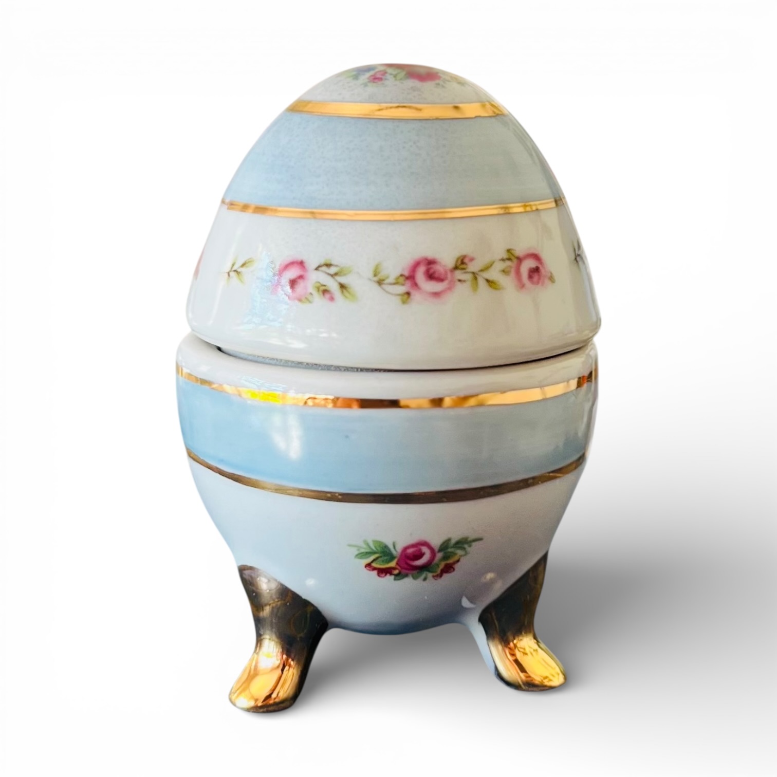 Com tema floral e acabamento com detalhes em ouro, ele se apoia sobre pequenos pezinhos que trazem ainda mais charme à peça. O interior pode acomodar anéis, brincos ou outras pequenas joias do dia.