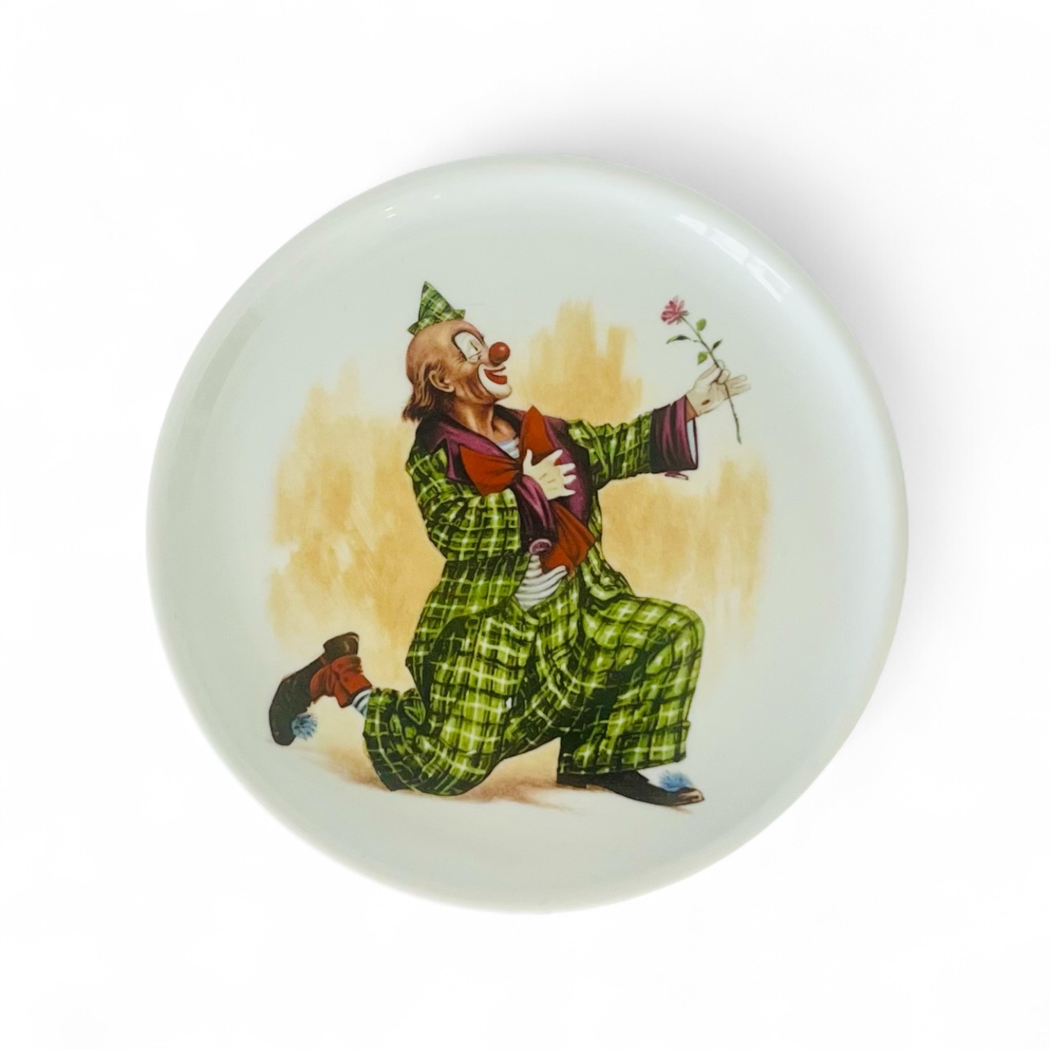 Lindo prato de porcelana com serigrafia de palhaço. Para usar na parede como peça decorativa ou como utilitário.