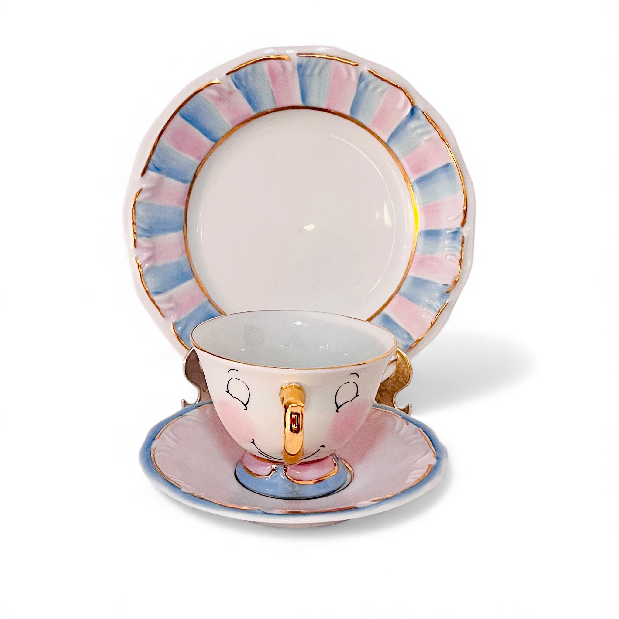 O charme da coleção Contos de Fadas, inspirada em A Bela e a Fera, agora em um conjunto perfeito para um chá especial! A xícara Ternura, com seu design delicado e detalhes em ouro, ganha a companhia ideal: o Prato de sobremesa Piteuzinho, com pinceladas suaves em tons de azul e rosa e filetes de ouro.