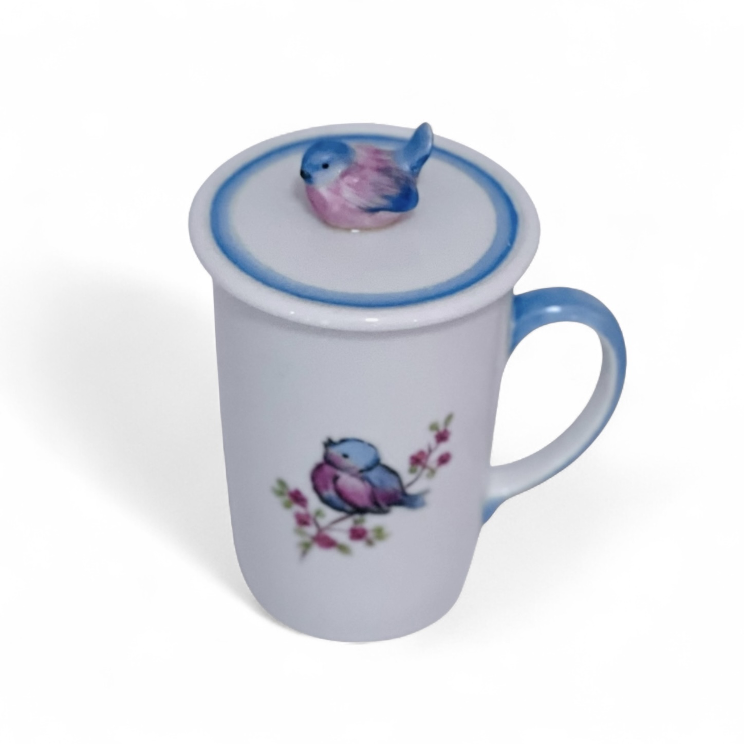 Caneca com tampa pintada à mão com o carinho e a delicadeza que o ateliê dedica a todas as criações,